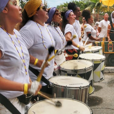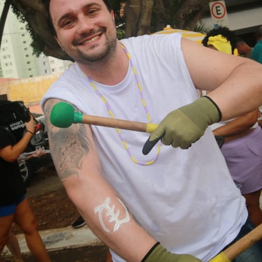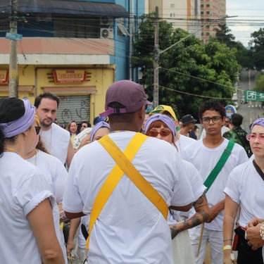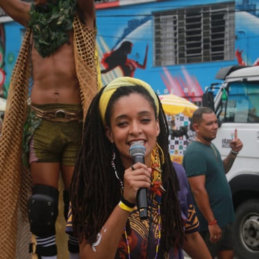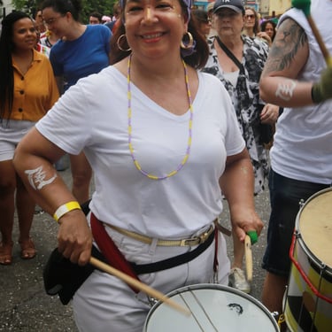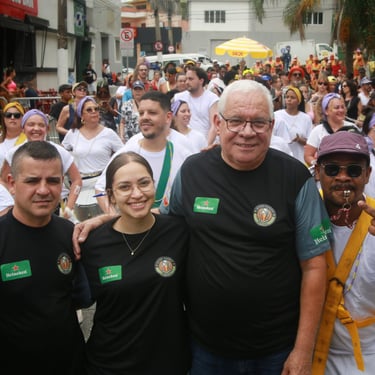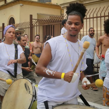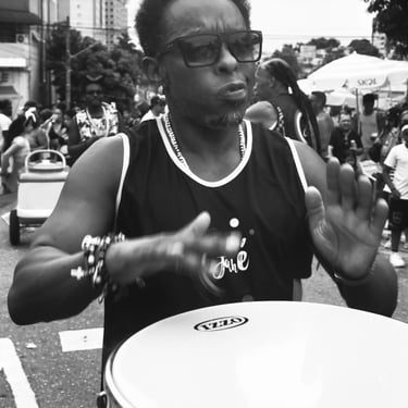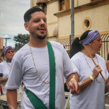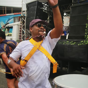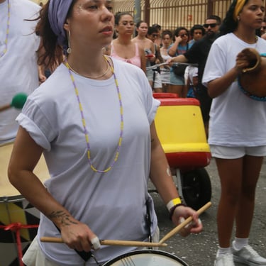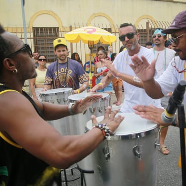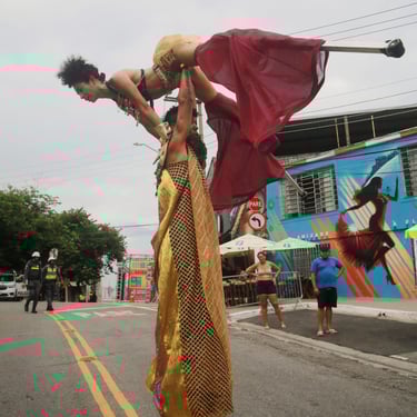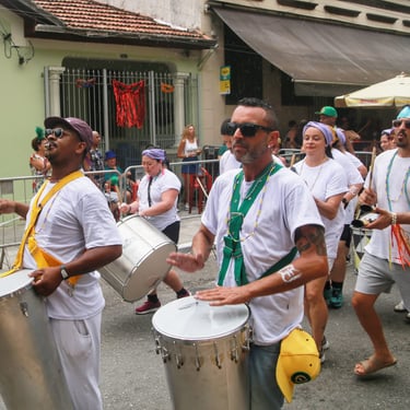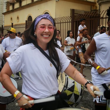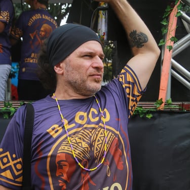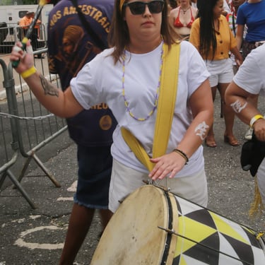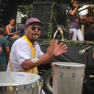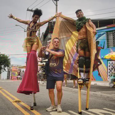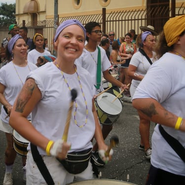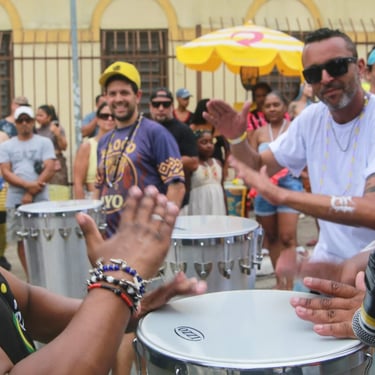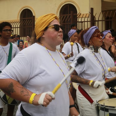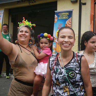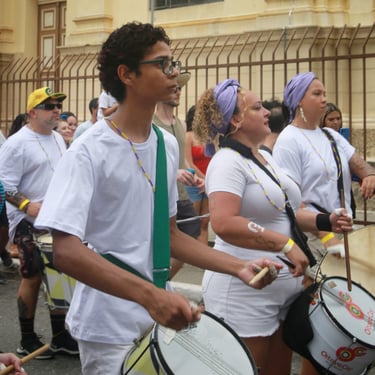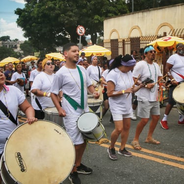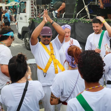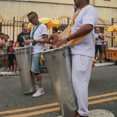 Fotos da apresentação do Bloco AYO no carnaval 2026 no bairro Freguesia do Ó, em São Paulo.