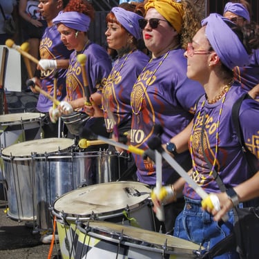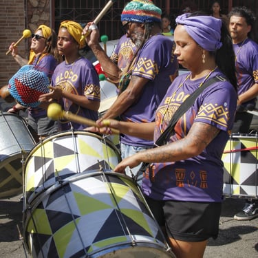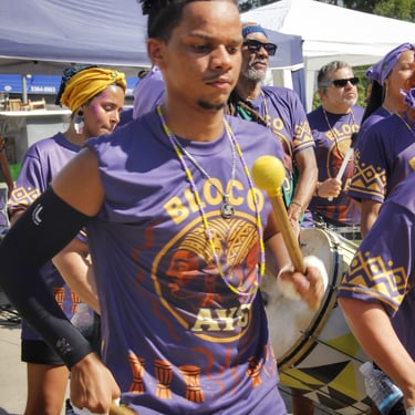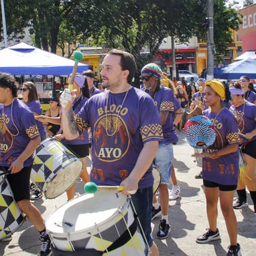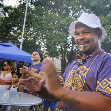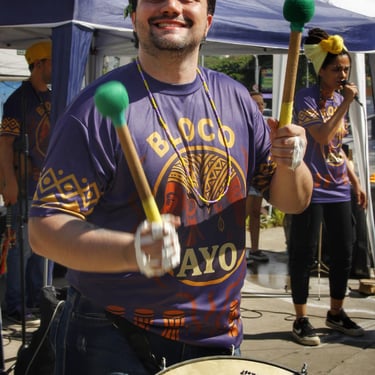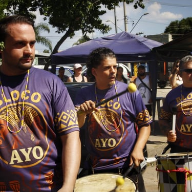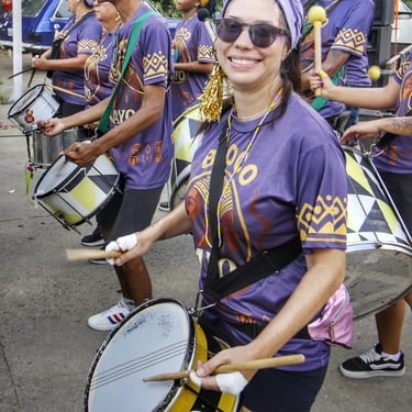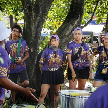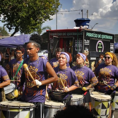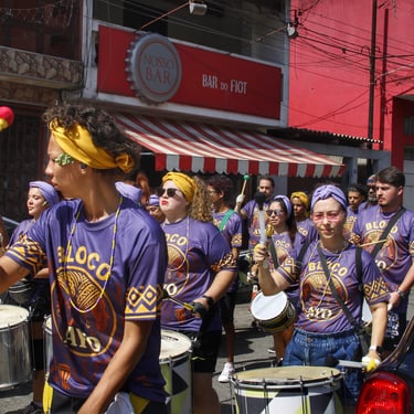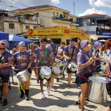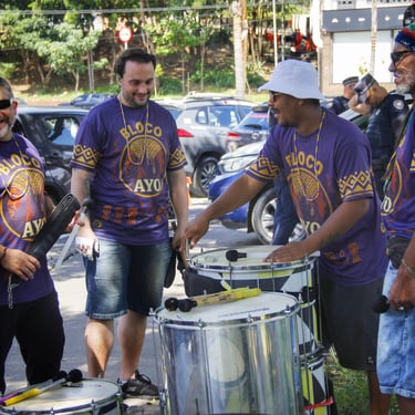 Fotos da apresentação do Bloco AYO no pré-carnaval 2026 no bairro de Pirituba, em São Paulo.